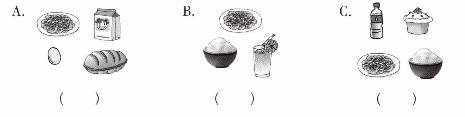 二、Choose and tick. 如果只有 20 元钱,你能买到下列哪组套餐呢?请你根据菜单信息选一选,给正确的一组打“√”。