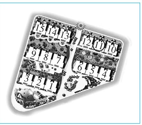 二、Look, find and circle. 周末,Xiaomei 的好朋友邀请 Xiaomei 到家里做客。Xiaomei 来到朋友家所在小区的大门口,在小区平面图上寻找朋友家那栋楼的位置。请你看一看,在小区平面图上帮 Xiaomei 找到并圈出来吧!
