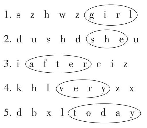 一、Look and circle. 单词宝宝们在玩捉迷藏。请你看一看,照样子把它们圈出来吧!