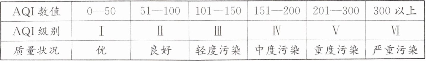 (1)空气质量指数(AQI)为213时,质量状况为Ⅵ级,重度污染。 ( )