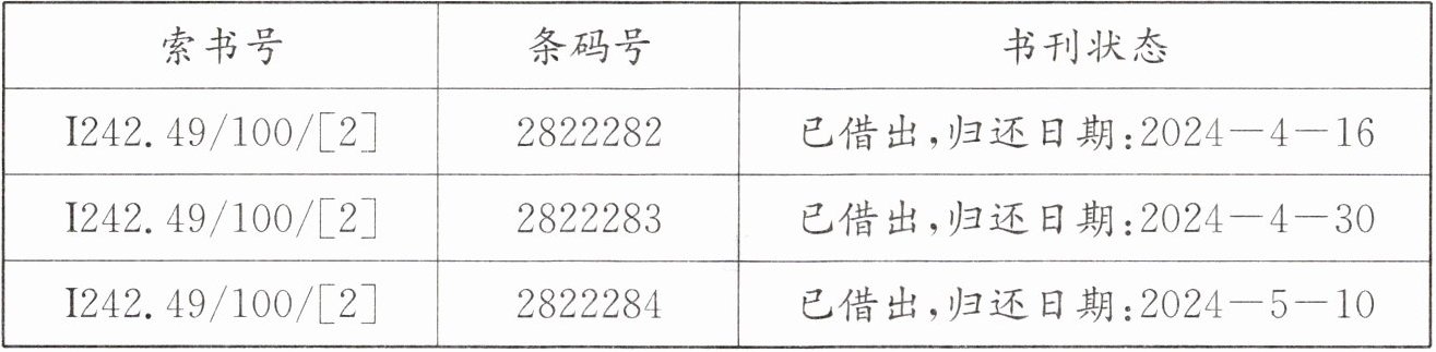 老师推荐同学们阅读《西游记》这本书,小优在A市图书馆的电子查询系统中,查到了如下信息: