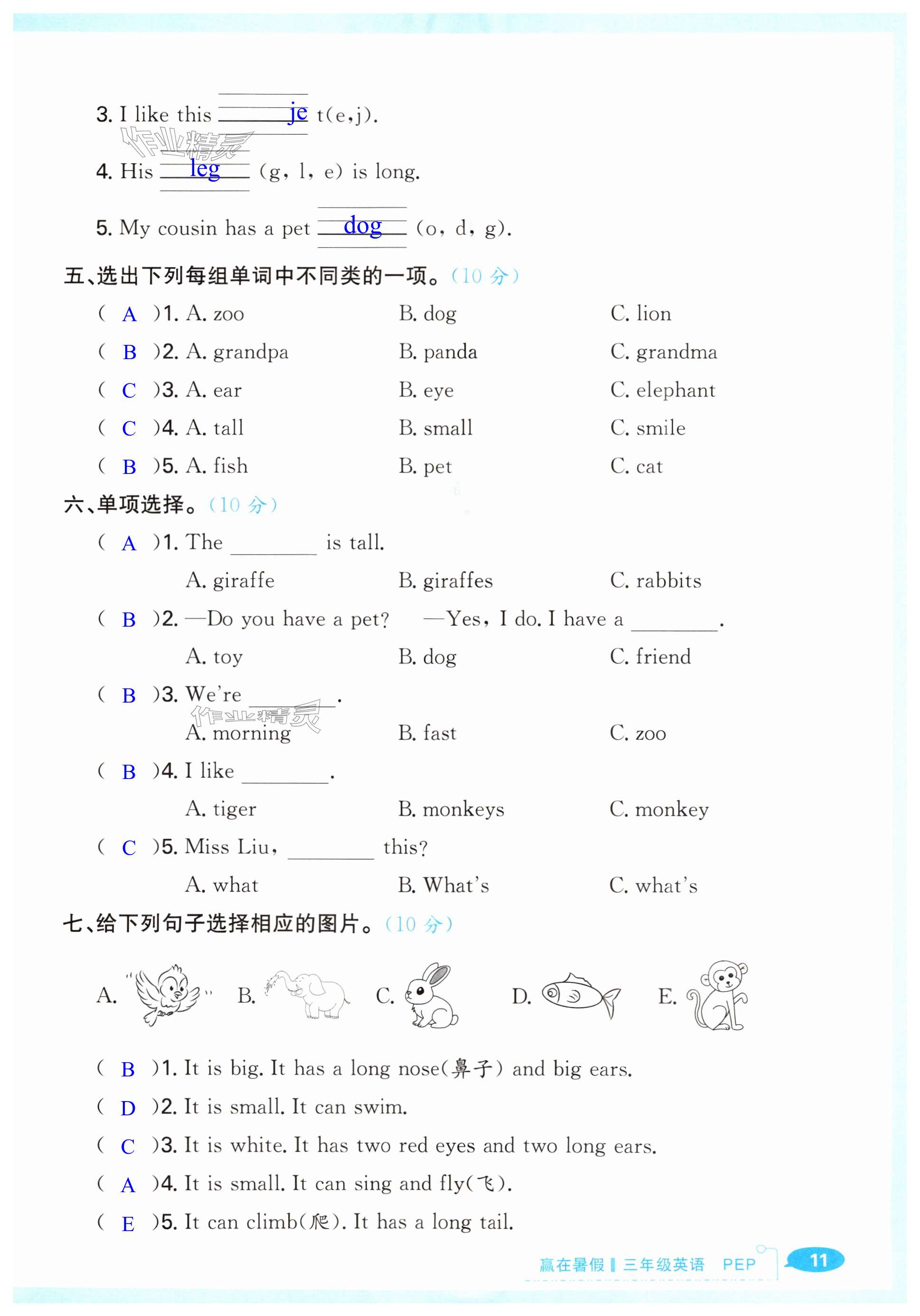 注:目前有些书本章节名称可能整理的还不是很完善,但都是按照顺序排列的,请同学们按照顺序仔细查找。练习册 2025年赢在暑假衔接教材三年级英语人教版合肥工业大学出版社 答案主要是用来给同学们做完题方便对答案用的,请勿直接抄袭。