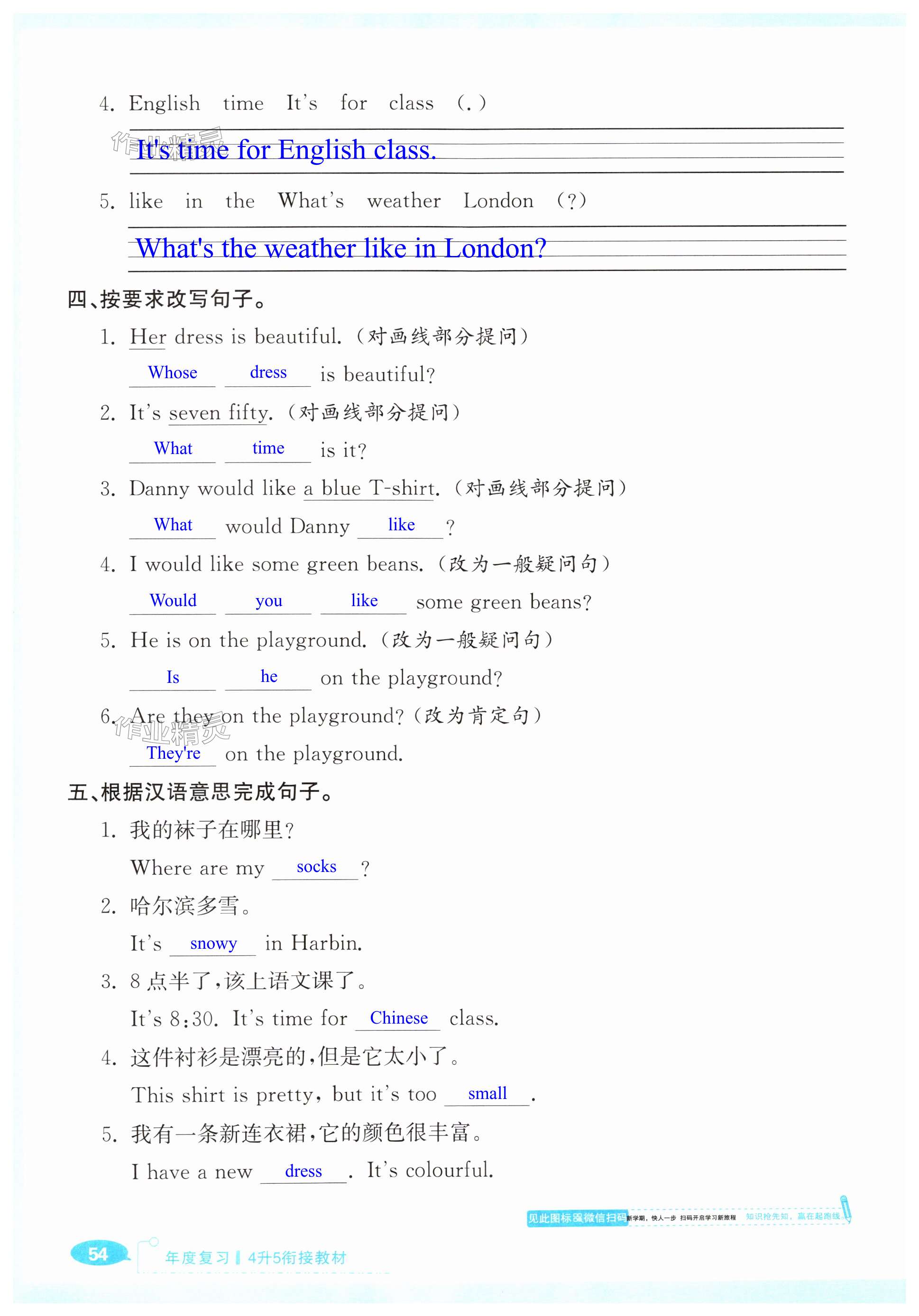 注:目前有些书本章节名称可能整理的还不是很完善,但都是按照顺序排列的,请同学们按照顺序仔细查找。练习册 2025年赢在暑假衔接教材合肥工业大学出版社四年级英语人教版 答案主要是用来给同学们做完题方便对答案用的,请勿直接抄袭。