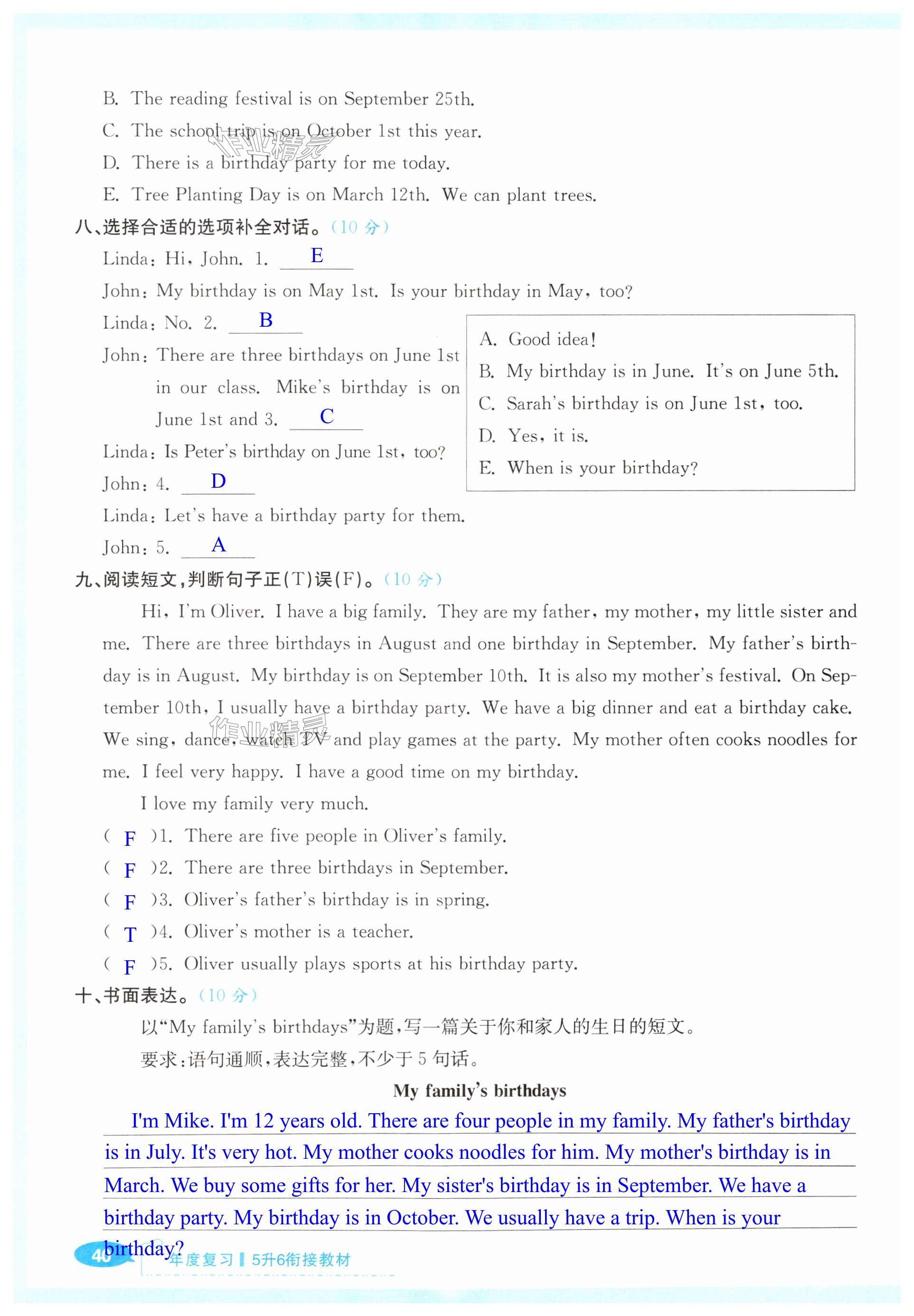 注:目前有些书本章节名称可能整理的还不是很完善,但都是按照顺序排列的,请同学们按照顺序仔细查找。练习册 2025年赢在暑假衔接教材合肥工业大学出版社五年级英语人教版 答案主要是用来给同学们做完题方便对答案用的,请勿直接抄袭。