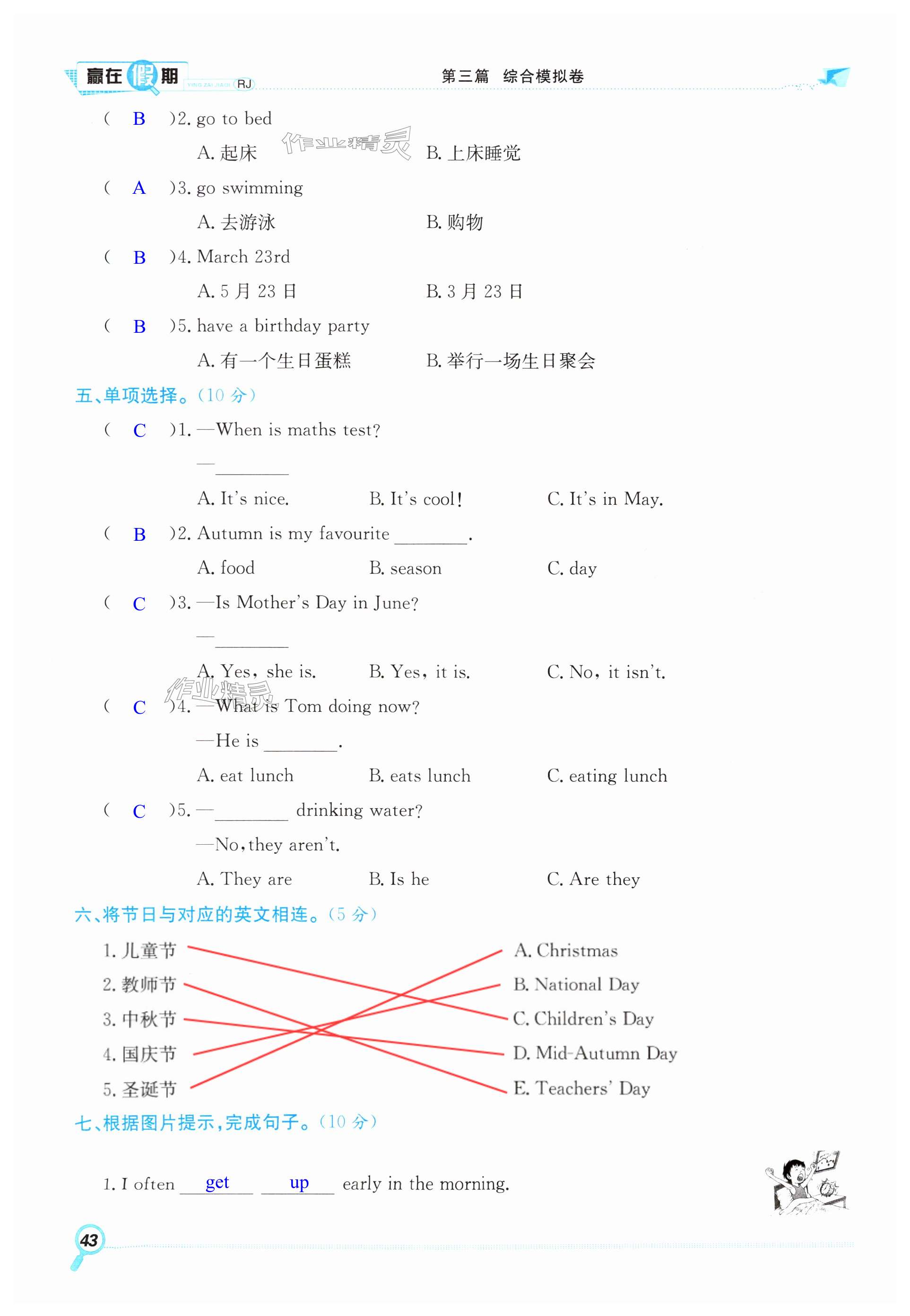 注:目前有些书本章节名称可能整理的还不是很完善,但都是按照顺序排列的,请同学们按照顺序仔细查找。练习册 2025年赢在假期期末加暑假五年级英语人教版合肥工业大学出版社 答案主要是用来给同学们做完题方便对答案用的,请勿直接抄袭。