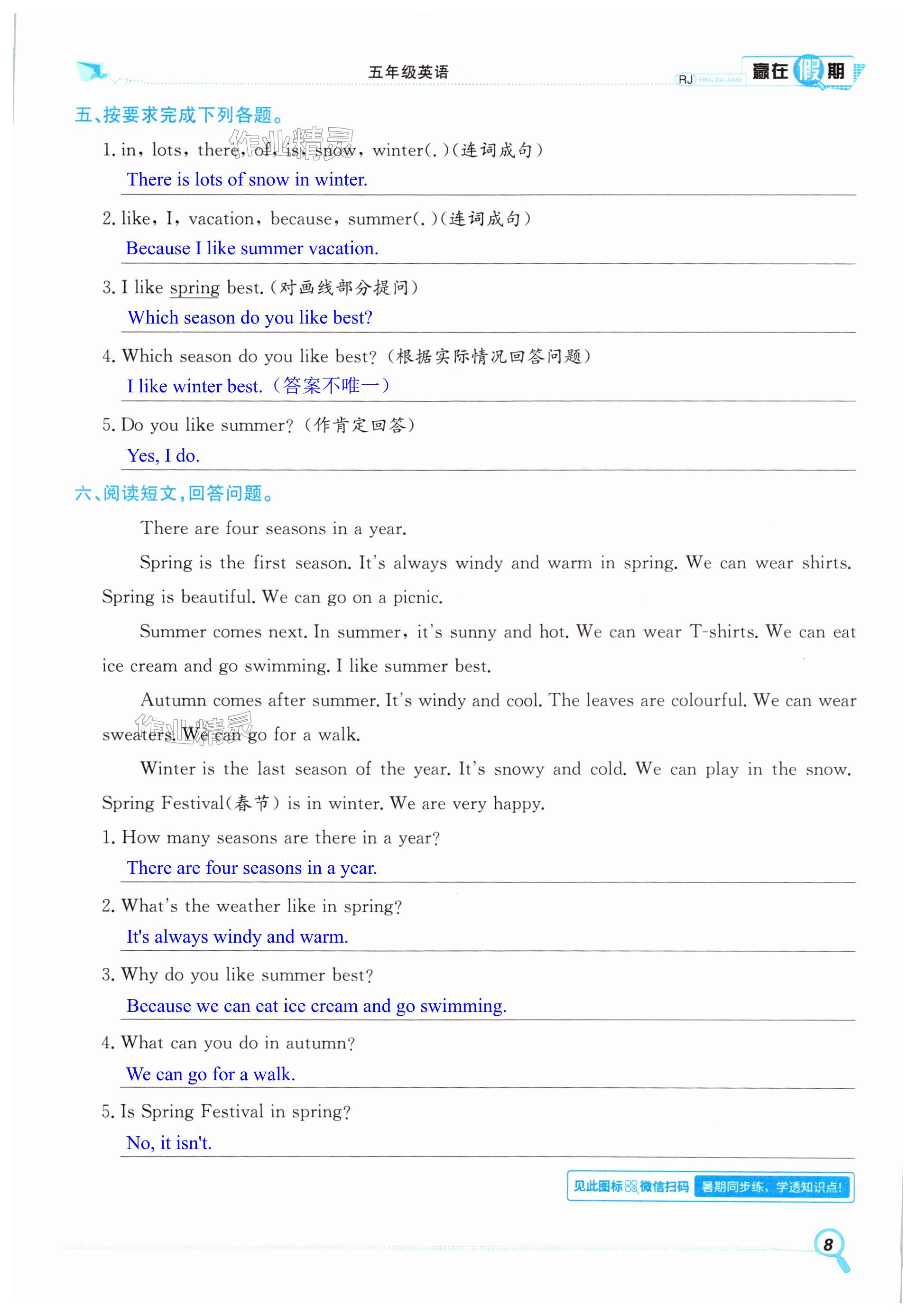 注:目前有些书本章节名称可能整理的还不是很完善,但都是按照顺序排列的,请同学们按照顺序仔细查找。练习册 2025年赢在假期期末加暑假五年级英语人教版合肥工业大学出版社 答案主要是用来给同学们做完题方便对答案用的,请勿直接抄袭。