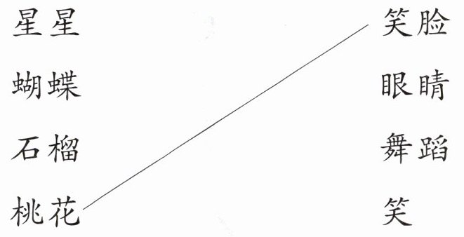 (1)弯弯的月亮 一艘明亮的小船 (2)月季花 牡丹花 玫瑰花 (3)蝴蝶在花丛中跳舞。