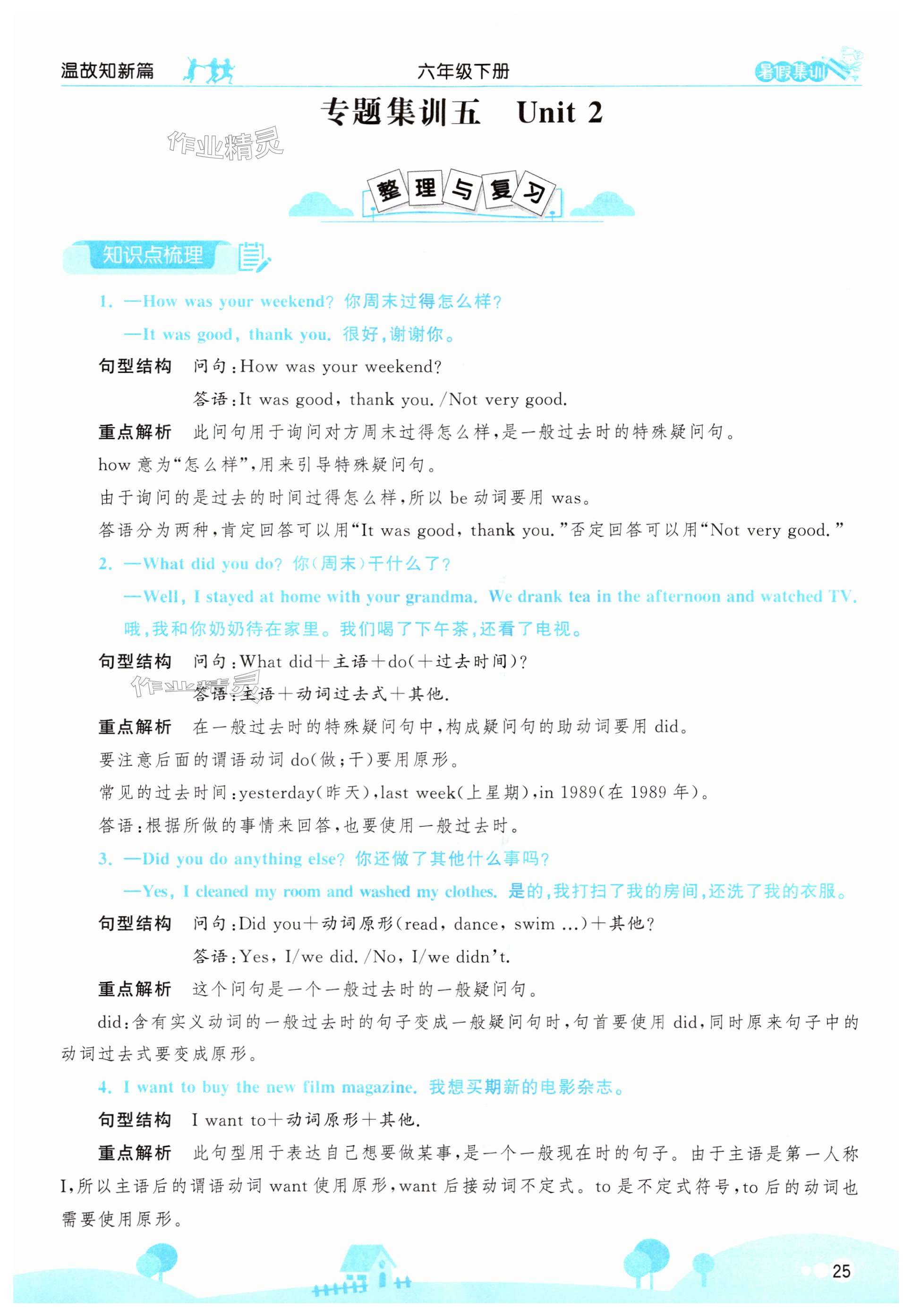 注:目前有些书本章节名称可能整理的还不是很完善,但都是按照顺序排列的,请同学们按照顺序仔细查找。练习册 2025年暑假集训六年级英语通用版合肥工业大学出版社 答案主要是用来给同学们做完题方便对答案用的,请勿直接抄袭。