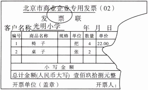 4. 下面是一张撕掉一角的发票,请你根据发票上的信息,算出每张桌子的价钱。