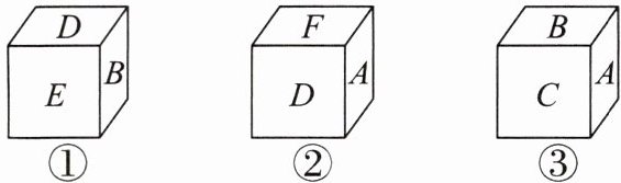 【答案】:D的对面是C,A的对面是E,B的对面是F。