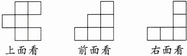 2. 用棱长为1厘米的小正方体若干个排放在一起,下图是小明从三个不同的角度看到的图形,这堆小正方体的体积是多少立方厘米?