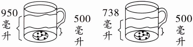 四、下面是相同的玻璃杯,杯中原有500毫升水,现在每个玻璃杯中分别放一个土豆(如下图),计算每个土豆的体积是多少立方厘米(毫升)?