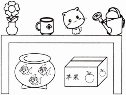 解析:本题主要考查上下位置的判断。通过观察图片中物品的相对位置来确定答案。