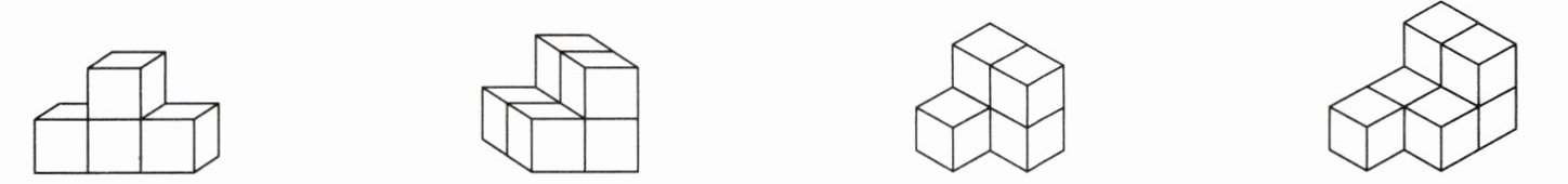3. 数一数下面各物体是由几个小正方体组成的。(4分)