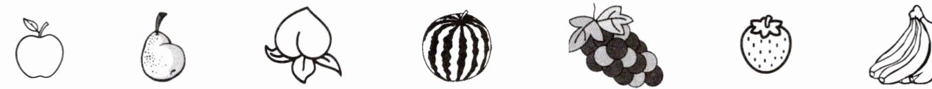 1. 从左数第4个水果是( );从右数第3个水果是( )。