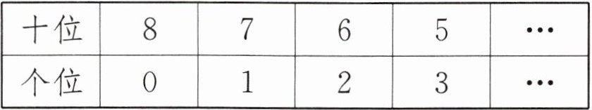 当十位是$8$时,个位是$8 - 8 = 0$,这个数是$80$。