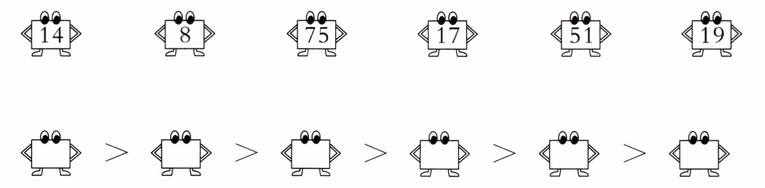 对于$19$、$17$和$14$,它们十位都是$1$,再比较个位,$9\gt7\gt4$,所以$19\gt17\gt14$。