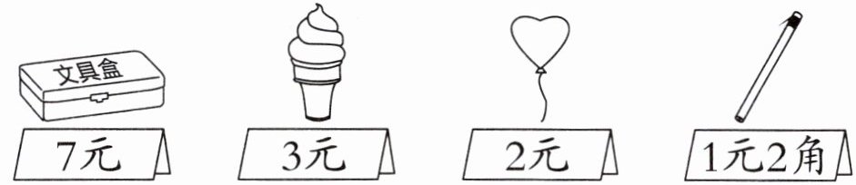 答案:$7$元$ + 2$元$ = 9$元,$9$元钱正好可以买一个文具盒和一个气球。