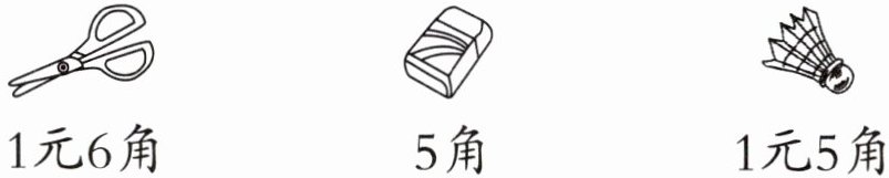【解析】第(1)题求李雨买一个文具盒和一支铅笔一共用去多少钱,用加法计算,列式为7元+1元2角。计算时,相同单位的数相加,即元和元相加,角和角相加。第(2)题求9元钱正好可以买哪两种物品,就看哪两种物品的价钱相加正好等于9元。