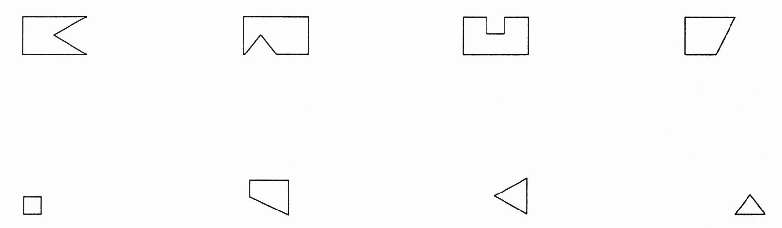 二、下面的图形是从上面哪个图形中剪下来的?连一连。(8分)