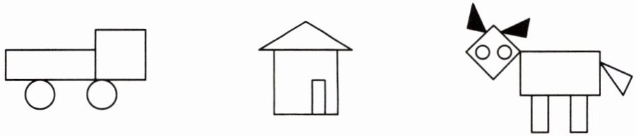 1. 上图中各种图形各有几个?请用画“正”字的方法记录。