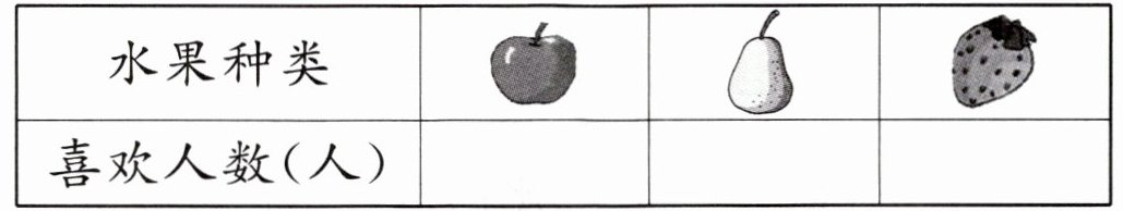 3. 喜欢吃苹果的同学比喜欢吃草莓的同学少( )人。(2分)