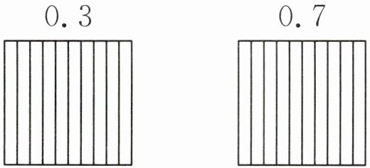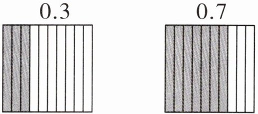 【解析】可以利用画图的方法,理解小数的意义。如表示 0.3 时,可把 1 个正方形,平均分成 10 份,每份是 $\frac{1}{10}$,可以写成 0.1,取其中的 3 份就是 0.3。同样的道理,取其中的 7 份就是 0.7。