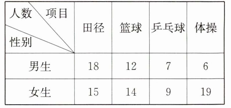 )人。(2分)(3)参加田径队的女生比参加乒乓球队的女生多(
