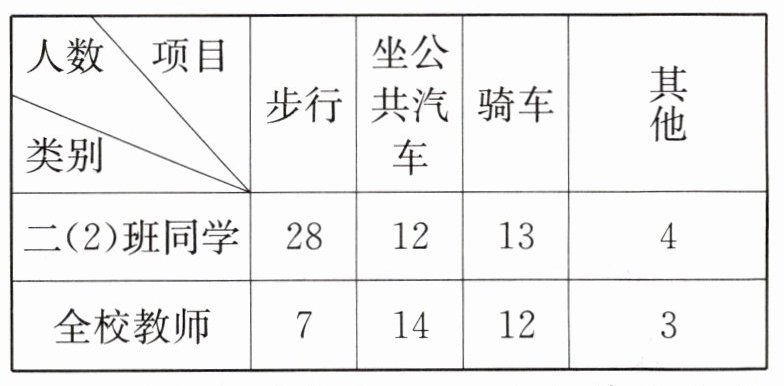 2. 下面是某小学二(2)班同学和全校教师来校情况统计表。(8分)