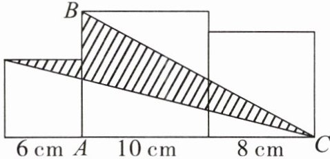 例5 下图是由边长分别为$6cm$,$10cm$,$8cm$的三个正方形组成的组合图形,求阴影部分的面积。
