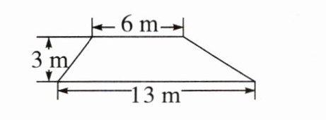 从图中可知梯形的上底$a = 6m$,下底$b = 13m$,高$h = 3m$,将这些数据代入梯形面积公式进行计算。