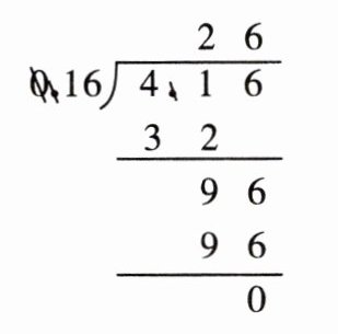 解析:本题可根据小数除法的运算法则来计算$4.16÷0.16$,可将被除数和除数同时扩大$100$倍,转化为整数除法进行计算。