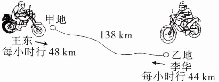 例2 两人骑摩托车同时出发,几小时后相遇?