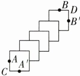 例4 5个相同的正方形重叠起来,连接点正好是正方形每边的中点(如右图)。正方形的边长是3 cm,这个图形的周长是多少厘米?