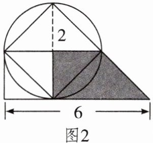 【解析】此题是求组合图形的面积,考查的是应用面积公式解决实际问题的能力。这个图形中有圆、三角形、梯形、半圆等图形,计算前要先对图形进行分析,看阴影部分的面积是哪些图形的面积和或差。将阴影部分割补成图1或图2,使计算简化。