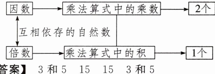 在 $3×5 = 15$ 这个算式中,$3$ 和 $5$ 是 $15$ 的因数,$15$ 是 $3$ 和 $5$ 的倍数。