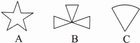 图A是轴对称图形,有5条对称轴;图B是轴对称图形,有1条对称轴;图C是轴对称图形,有1条对称轴。