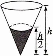 $ V_{\text{水}} = \frac{1}{3} \pi \left(\frac{r}{2}\right)^2 \cdot \frac{h}{2} = \frac{1}{3} \pi \cdot \frac{r^2}{4} \cdot \frac{h}{2} = \frac{1}{24} \pi r^2 h $,