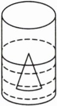 8. 如下图,一个底面直径为 $ 20 \mathrm{cm} $ 的装有一部分水的圆柱形容器,水中放着一个底面直径 $ 12 \mathrm{cm} $,高 $ 10 \mathrm{cm} $ 的圆锥形铅锤,铅锤全部浸入水中。当铅锤从水中取出后,容器中水面高度下降了几厘米?