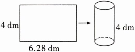 (2) 底面半径$r = 1 \mathrm{dm}$,高$h = 4 \mathrm{dm}$,