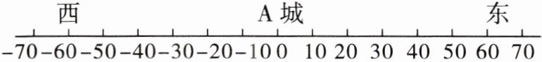 (5)如果这辆汽车先从A城出发,向西行70km,再向东行70km,这时它的位置表示是( )km。(2分)
