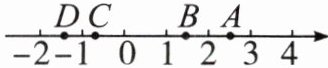2.如图所示,分别用数轴上的点A,B,C,D表示数,正确的是( )。