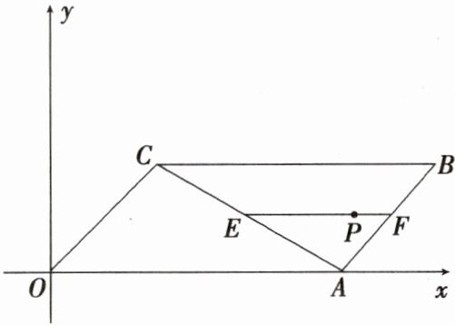 10. 如图,在平面直角坐标系中,平行四边形$OABC的顶点O$在坐标原点,点$E是对角线AC$上一动点(不包含端点),过点$E作EF // BC$,交$AB于F$,点$P在线段EF$上。若$OA = 4$,$OC = 2$,$\angle AOC = 45^{\circ}$,$EP = 3PF$,$P点的横坐标为m$,则$m$的取值范围是(
