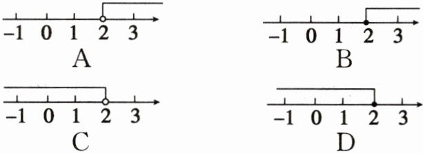 1. 使$\sqrt{x - 2}$有意义的x的取值范围在数轴上表示为(