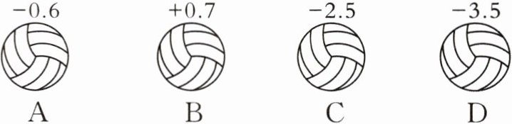 6. 如图,检测排球,其中质量超过标准的克数记为正数,不足的克数记为负数,下面检测过的四个排球,在其上方标注了检测结果,其中质量最接近标准的一个是 (