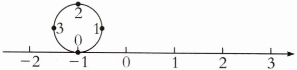 8. 如图,圆的周长为4个单位长度,在该圆的4等分点处分别标上0,1,2,3,先让圆周上表示数字0的点与数轴上表示$-1$的点重合,再将圆沿着数轴向右滚动,则数轴上表示2025的点与圆周上的点重合的数字是 (