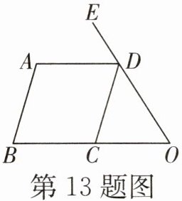 13. 如图,已知$AB// DC,AD// BO$,点C在BO上,点E在OD的延长线上.若$∠B= 76^{\circ },∠EDA= 48^{\circ }$,则$∠CDO$的度数是______