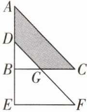 例3 (福建)如图,在三角形ABC 中,$∠ABC= 90^{\circ },BC= 11$,把三角形 ABC 向下平移至三角形 DEF 后,$AD= CG= 6$,则图中阴影部分的面积为____