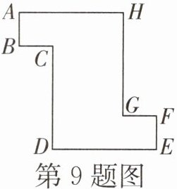 9. 如图,一块“Z”字形的铁片,每个角都是直角,且$AB= BC= EF= GF= 1$,$CD= DE= GH= AH= 3$。现将铁片裁剪并拼接成一个和它面积相等的正方形,则正方形的边长是(