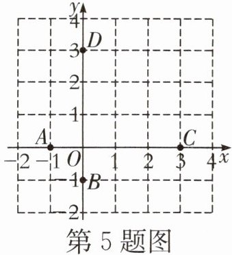 5. 如图,在平面直角坐标系$xOy中有A,B,C,D$四点.若有一直线$l经过点(-1,3)且与y$轴垂直,则$l$也会经过的点是 (
